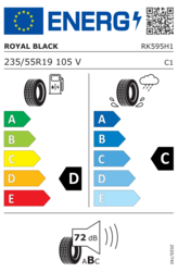 Reifen für Personenkraftwagen, der Royalblack Royal Performance 235/55 R19 105V XL Ganzjahresreifen bietet hervorragende Stabilität und Sicherheit auf nassen und trockenen Straßen dank seiner gut ausbalancierten Steifigkeit und seinen gerillten Seitenwänden. Aquaplaning wird durch das spezielle Design des Mittelteils weitgehend vermieden. Sie werden sein geringes Rollgeräusch zu schätzen wissen.